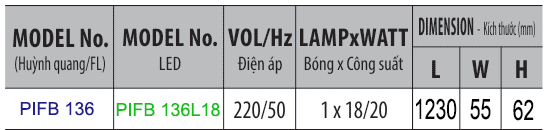 - PIFB136L18 có tuổi thọ cao và khả năng tiết kiệm điện rất tốt. Vì thế cho nên, sản phẩm này được nhiều người tiêu dùng lựa chọn rất nhiều trên thị trường hiện nay.