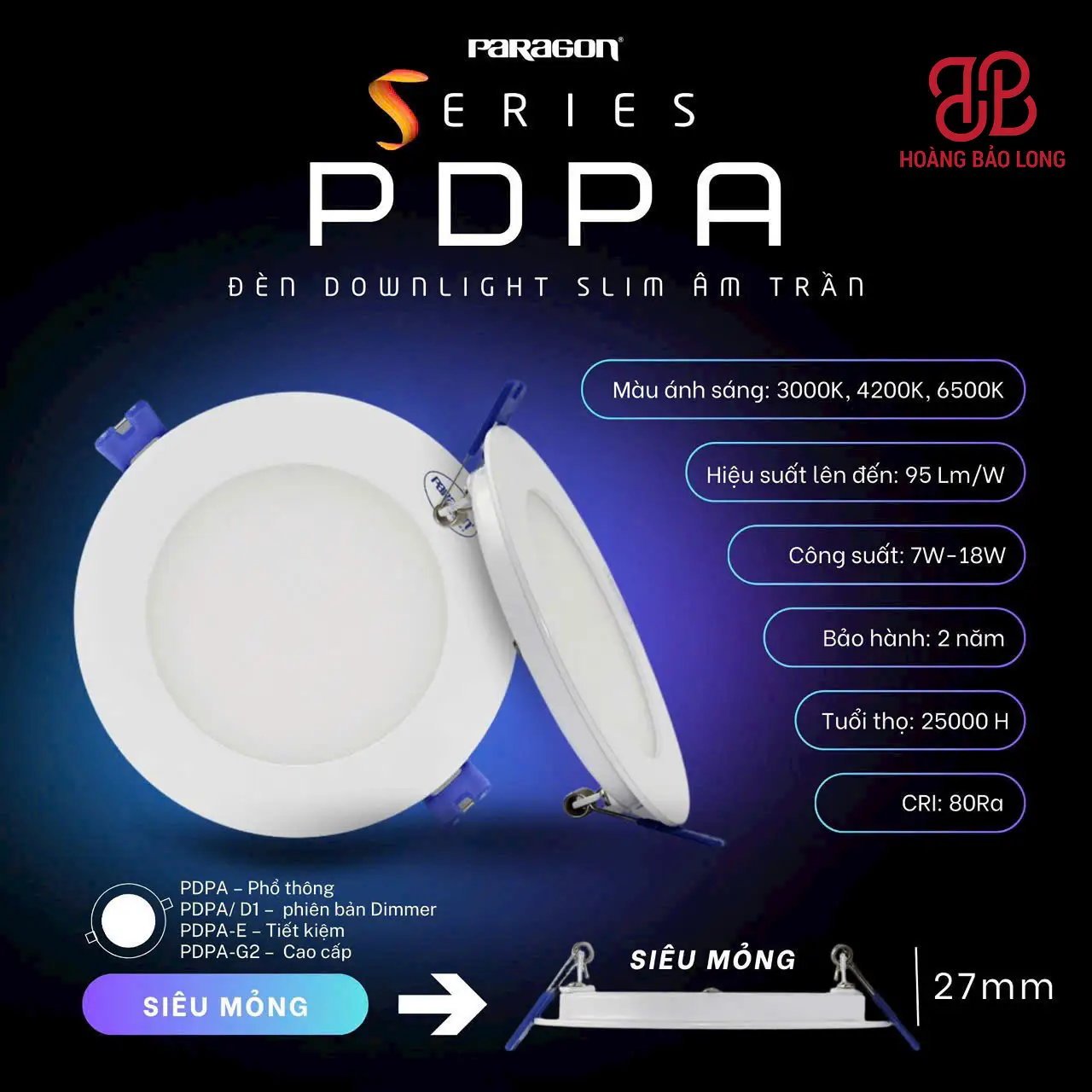 • Series PDPA (Siêu mỏng): Thiết kế độ dày chỉ 27mm, phù hợp cho trần thạch cao có khoảng hở hẹp.