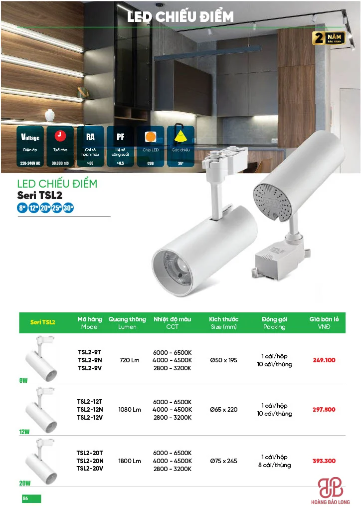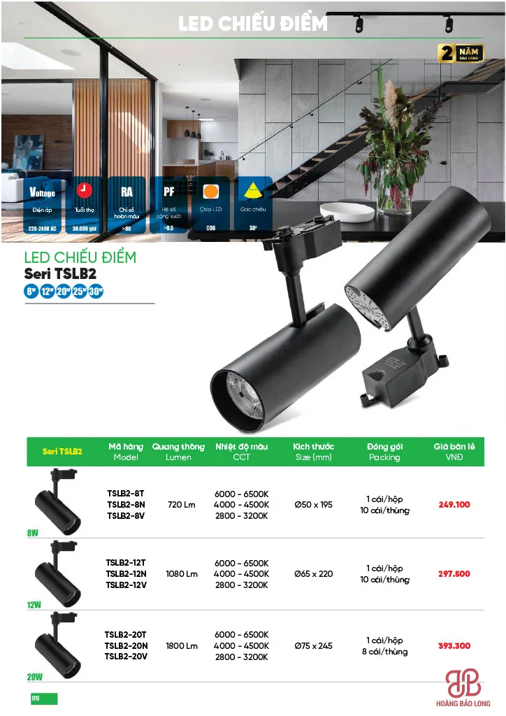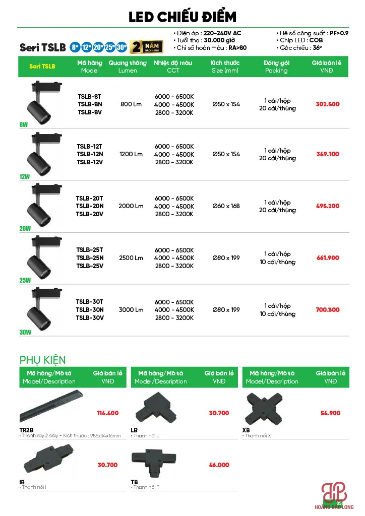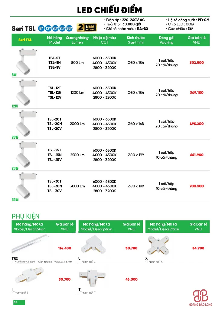(Ghi chú: Mã T: Ánh sáng trắng, N: Trung tính, V: Ánh sáng vàng)