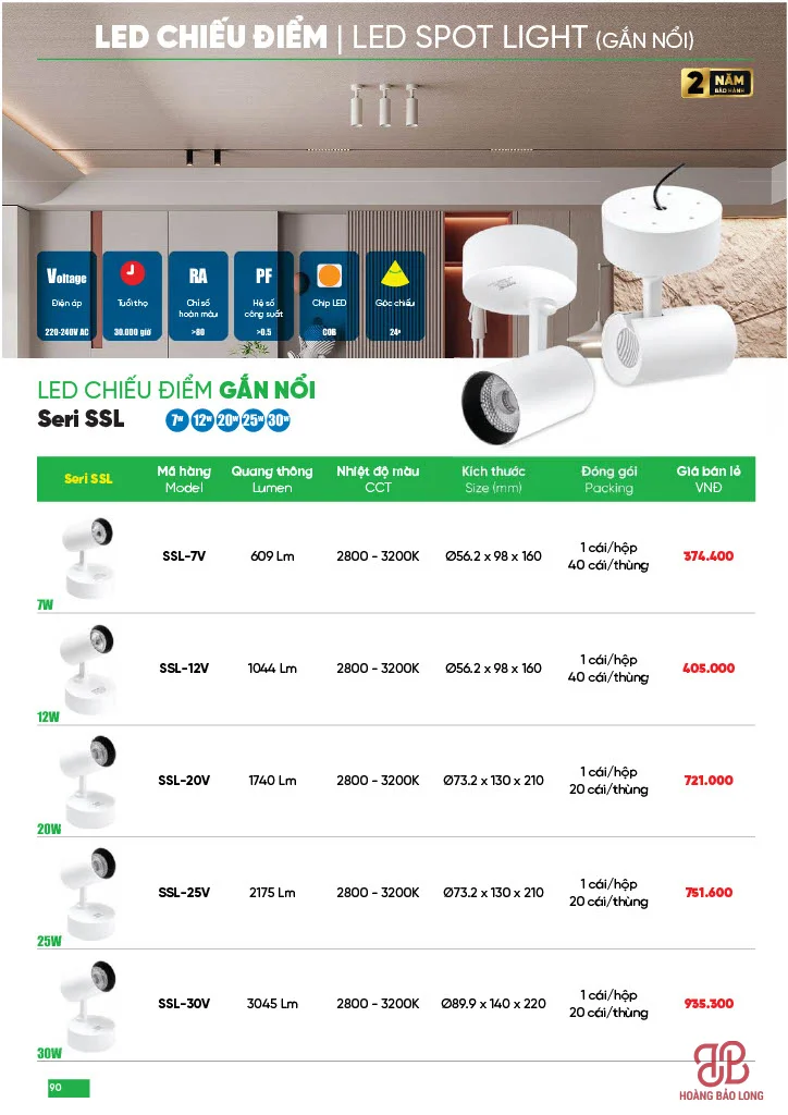 Series SSL: Thiết kế đế ngồi chắc chắn, góc chiếu 24 độ giúp ánh sáng tập trung cao độ. Có các công suất: 7W, 12W, 20W, 25W, 30W.