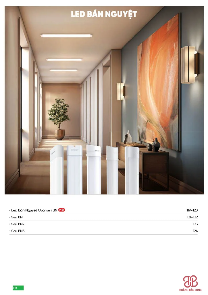 Seri BN3: Thân đèn nhôm sơn tĩnh điện, thiết kế thanh mảnh sang trọng, góc chiếu 130 độ, tối ưu cho trang trí nội thất.
