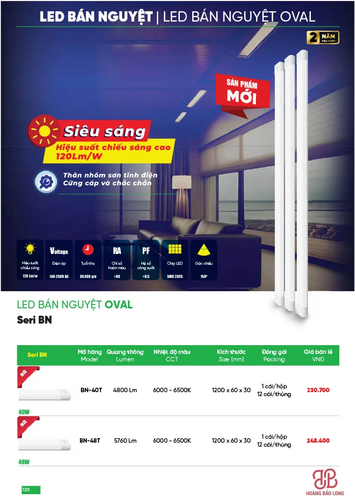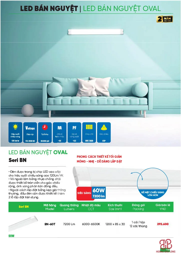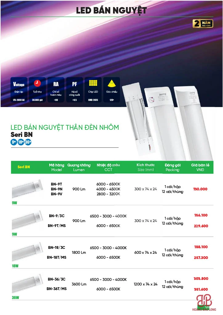 | Seri BN (Nhôm) | BN-36T/N/V | 36W | 1.2m | 303.800 |
