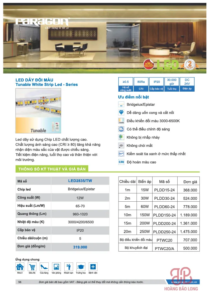 Đèn LED dây Paragon là giải pháp chiếu sáng trang trí linh hoạt, mang lại hiệu ứng ánh sáng liền mạch và tinh tế cho mọi không gian từ nội thất đến ngoại thất. Tại Hoàng Bảo Long (Hoangbaolong.net), chúng tôi phân phối đầy đủ các dòng LED dây Paragon (Series LED5050, LED2835, PLS…) với cam kết chất lượng chuẩn Châu Âu và giá chiết khấu tốt nhất thị trường.