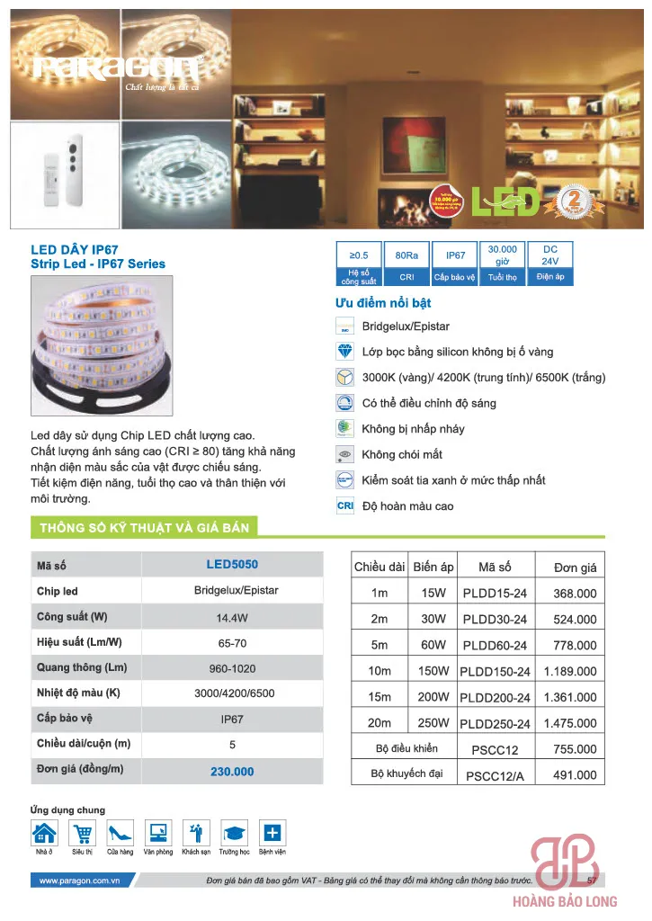 Bảng giá Đèn LED dây Paragon cập nhật mới nhất