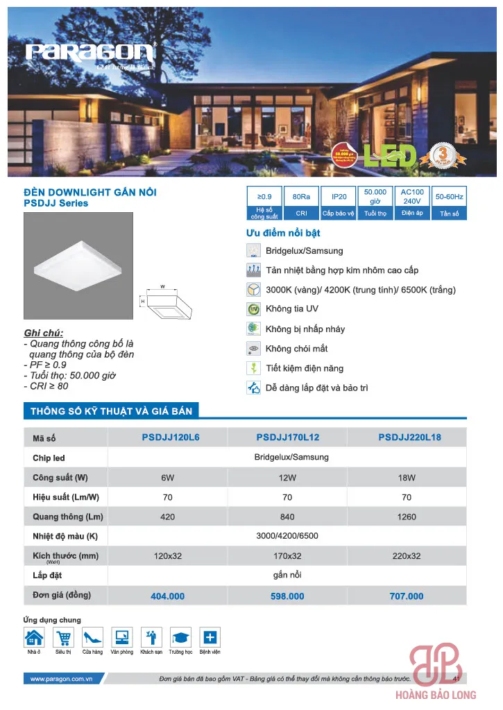6. Mua Đèn Led ốp trần Paragon chính hãng tại Hoangbaolong.net