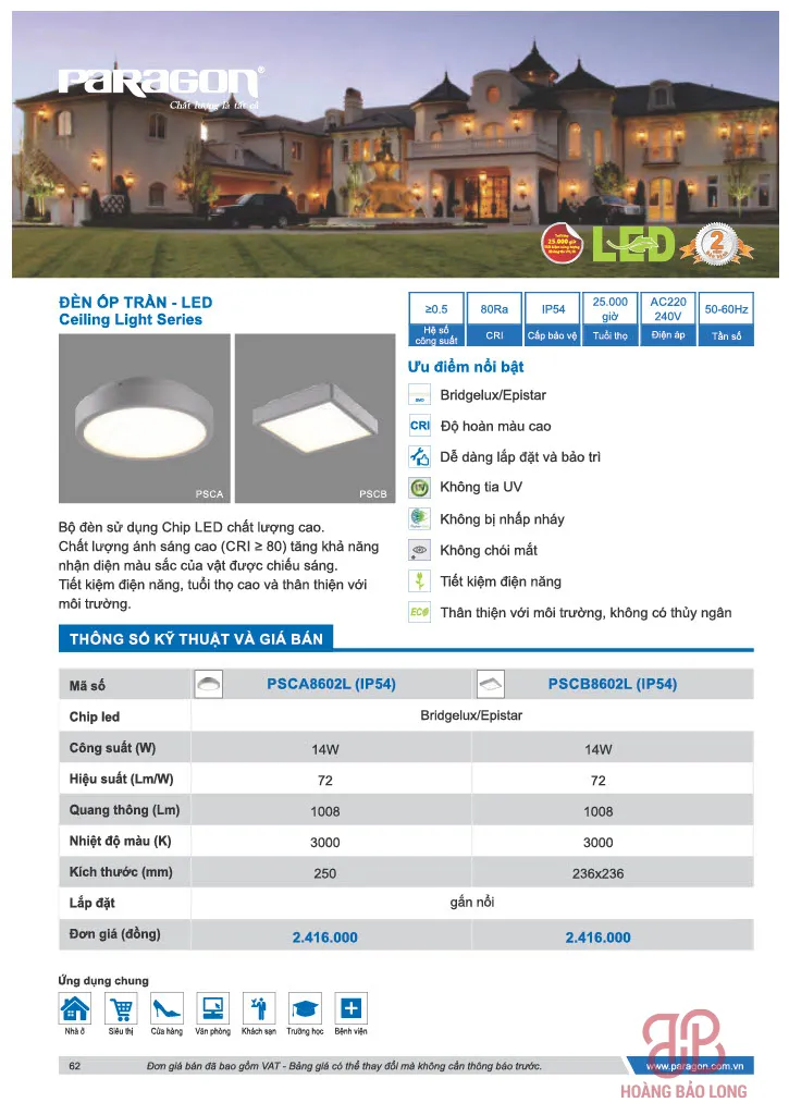 5. Catalog đèn ốp trần Paragon và Bảng giá mới nhất