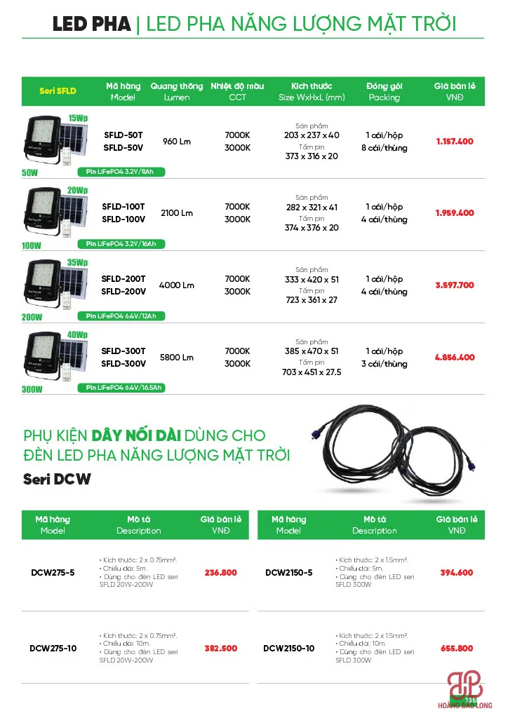 | MÃ HÀNG | CÔNG SUẤT | KÍCH THƯỚC ĐÈN | QUANG THÔNG | CÔNG SUẤT PIN | GIÁ BÁN HBL |