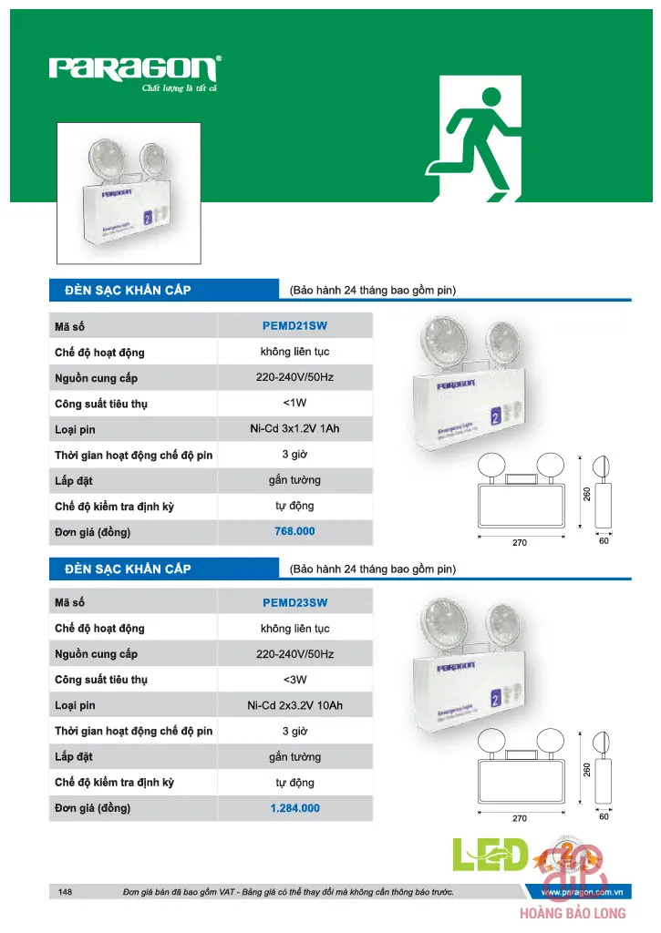 3. Báo giá đèn khẩn cấp Paragon cập nhật mới nhất tại Hoàng Bảo Long