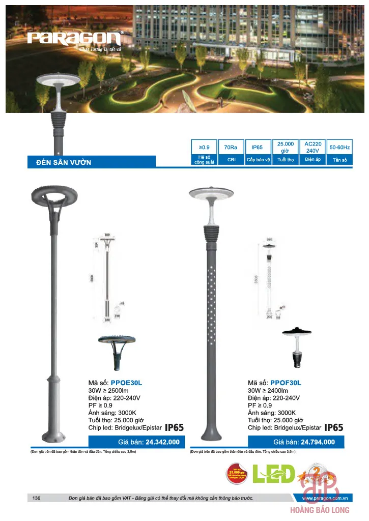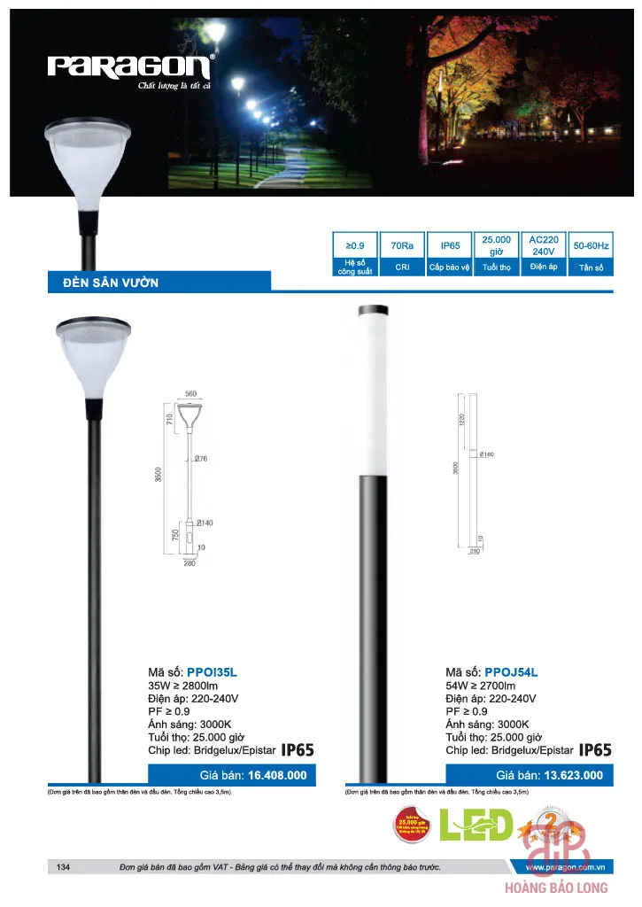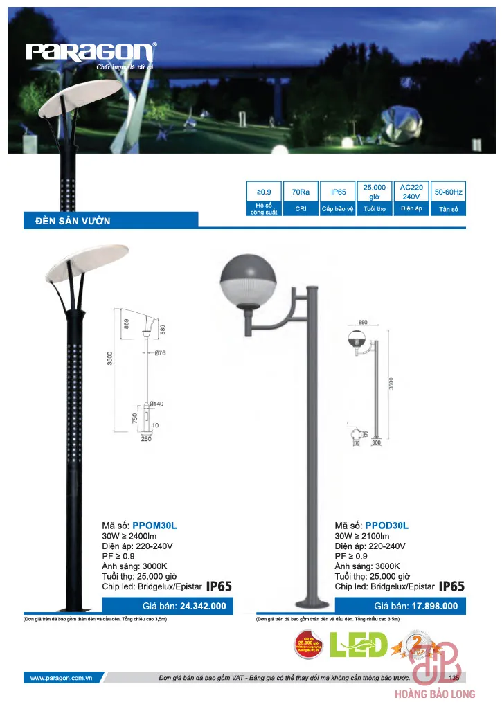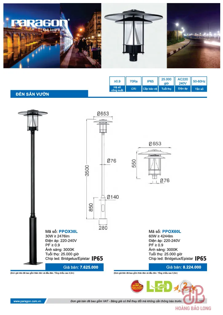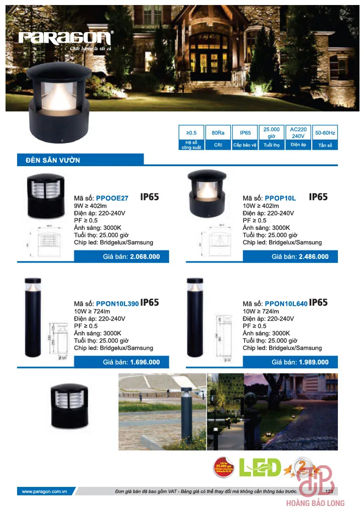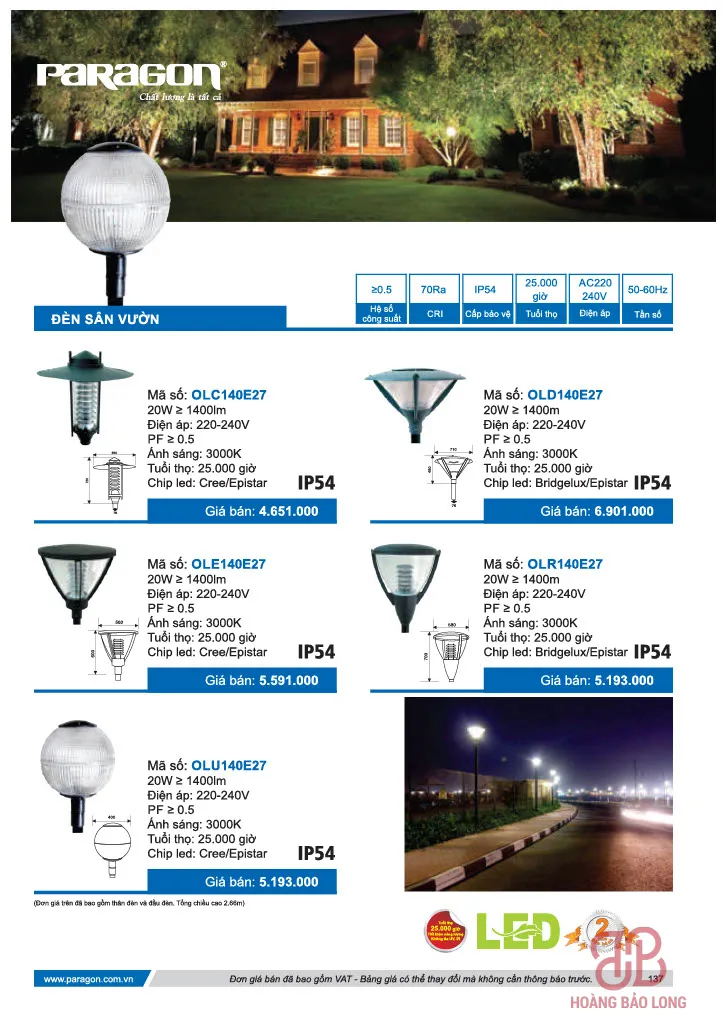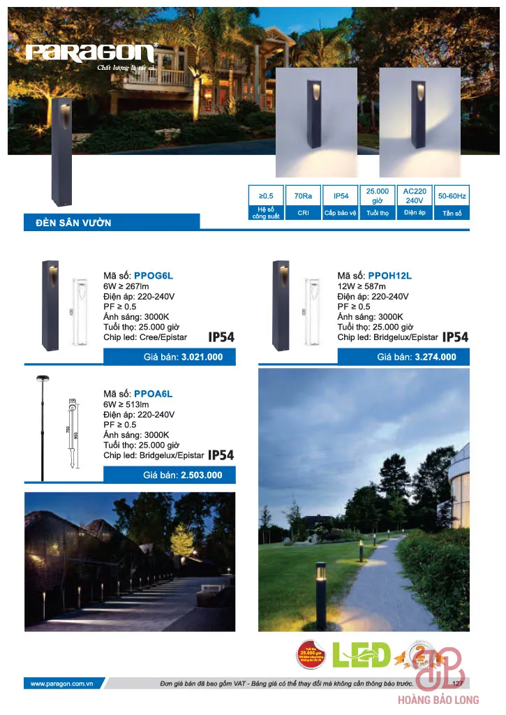 Bảng giá đèn sân vườn Paragon