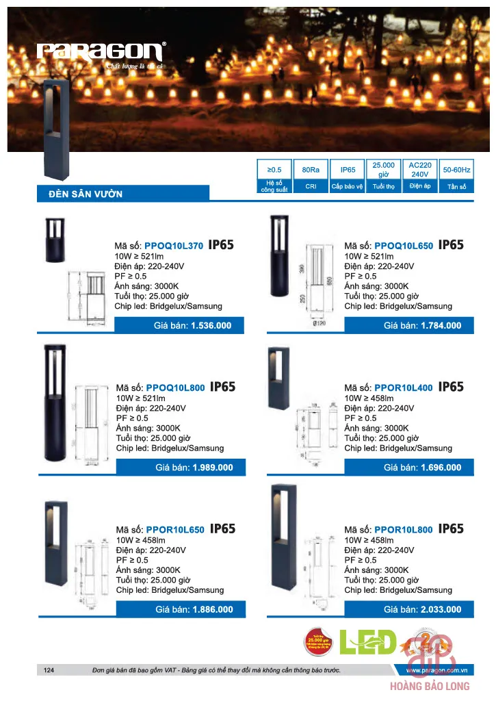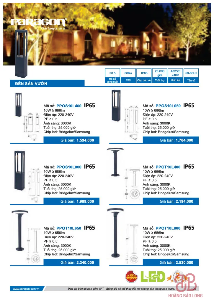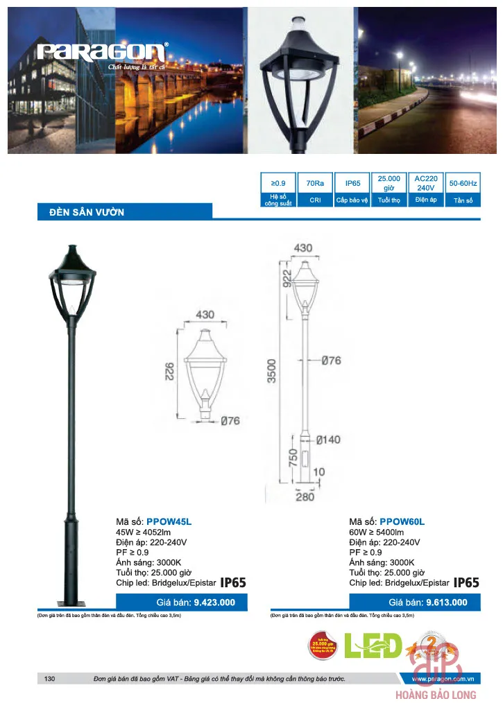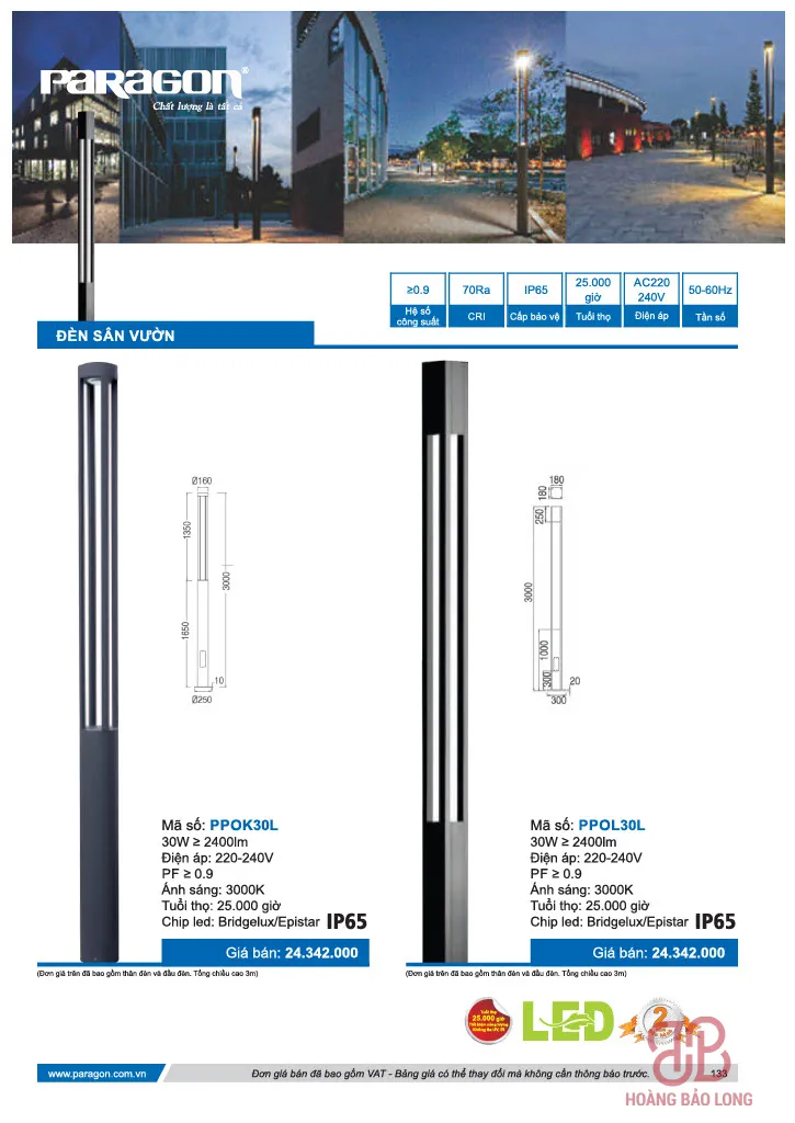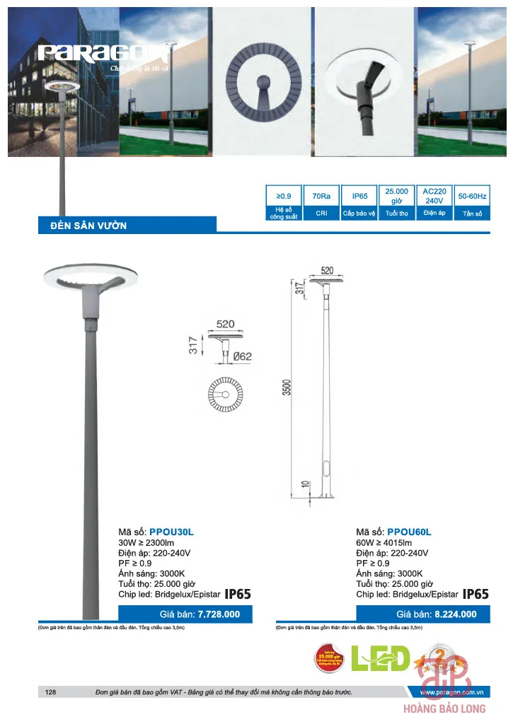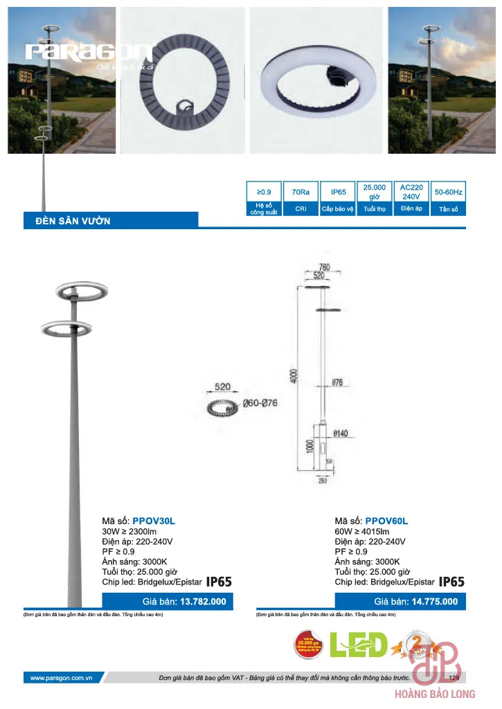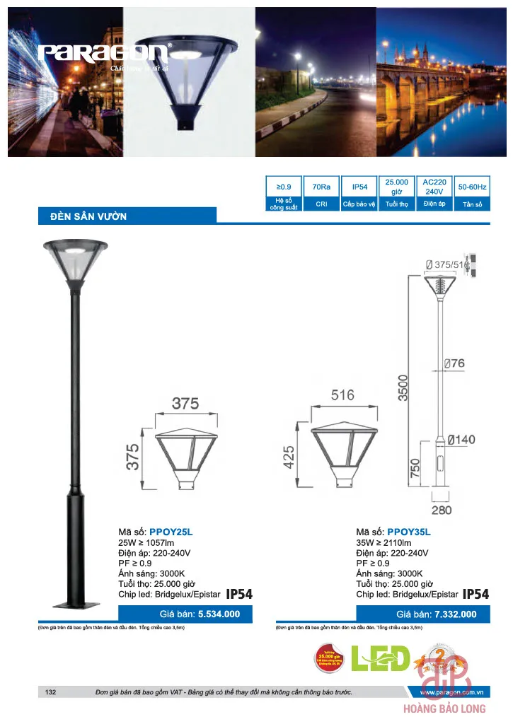 Bảng giá đèn sân vườn Paragon